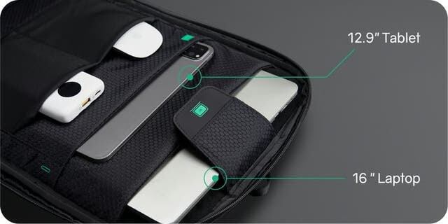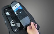 ショルダーストラップ部分には充電用USBポートと、こちらのスキミング防止対策済みカードポケットが搭載されています。このポケットにカード類を入れることで、遠隔でカード情報を盗み取るスキミングをシャットアウトし、情報を盗み取られにくくすることができます。