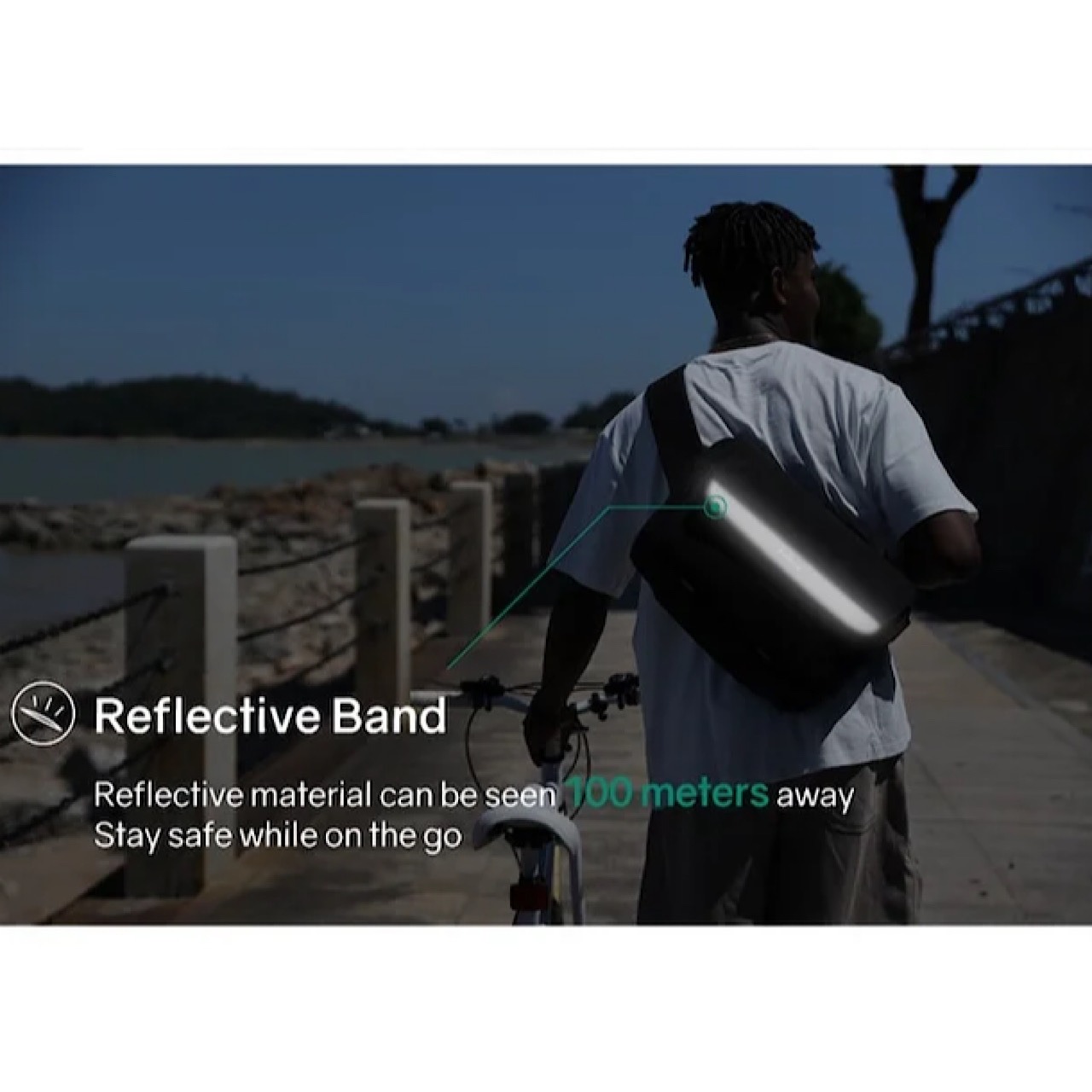 ClickSling Xには、防刃素材、YKK不正開閉防止ファスナー、撥水素材、大きなリフレクターを搭載した「毎日使える」安全設計の高機能バッグです。